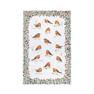 The rosy red-breasted robins illustrated on this traditional tea towel capture the true essence of Christmas in the United Kingdom. Framed by beautiful winter holly and berries, this tea towel will make the perfect gift for friends and families this festive season.